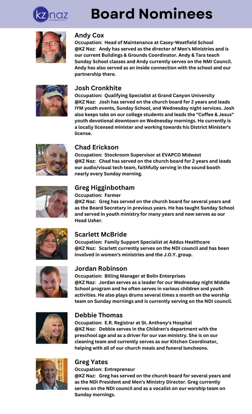 Please pray over these candidates and for those who will help our church move forward towards God's will for our congregation.